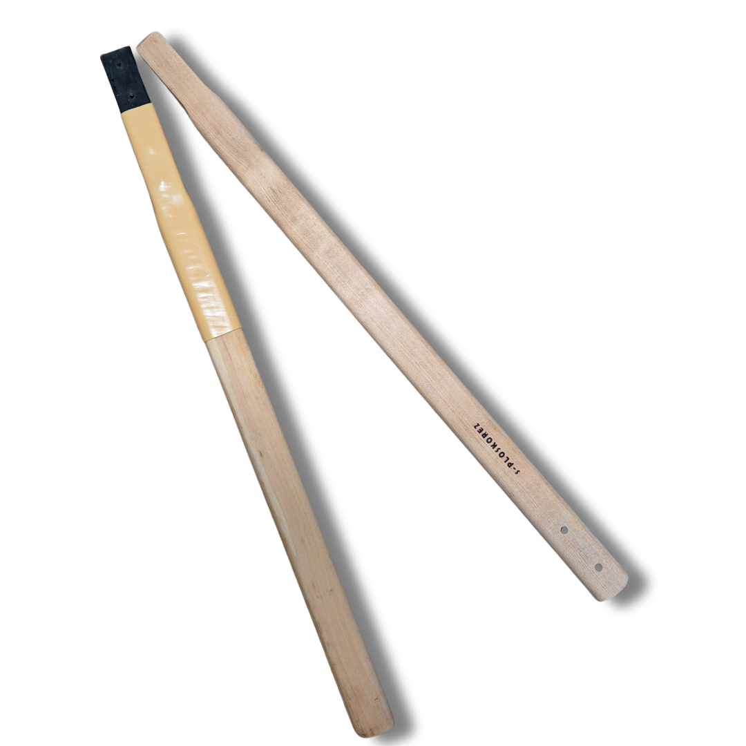 Comes with two part handle so you can choose if you want to use it with a short (600mm) or long (1200mm) handle. Join in the middle is steel with a plastic sheath to protect it. Screws to join two parts of handle not included.